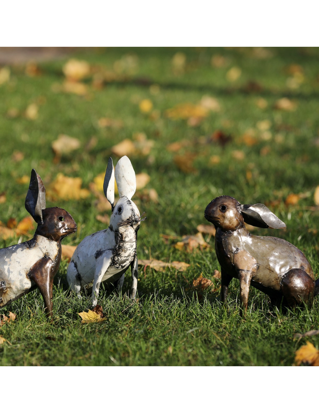 Lapin en métal recyclé blanc - Artisanat du Zimbabwe