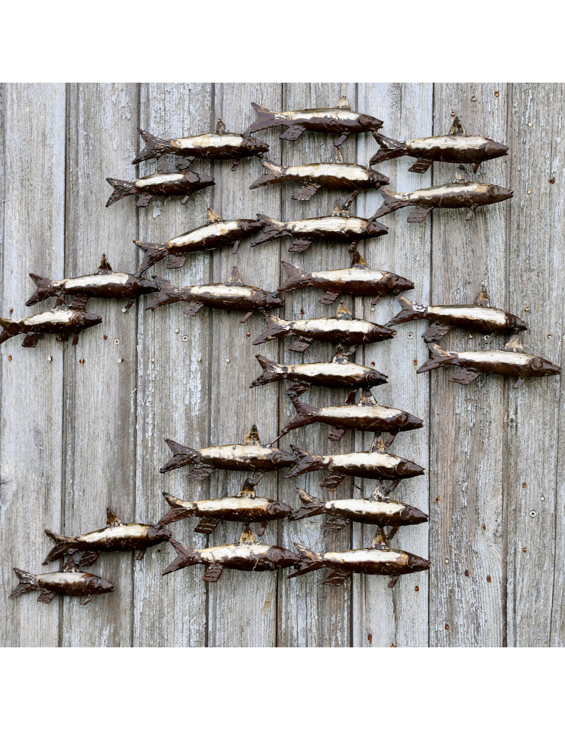 Groupe de 25 sardines en métal recyclé