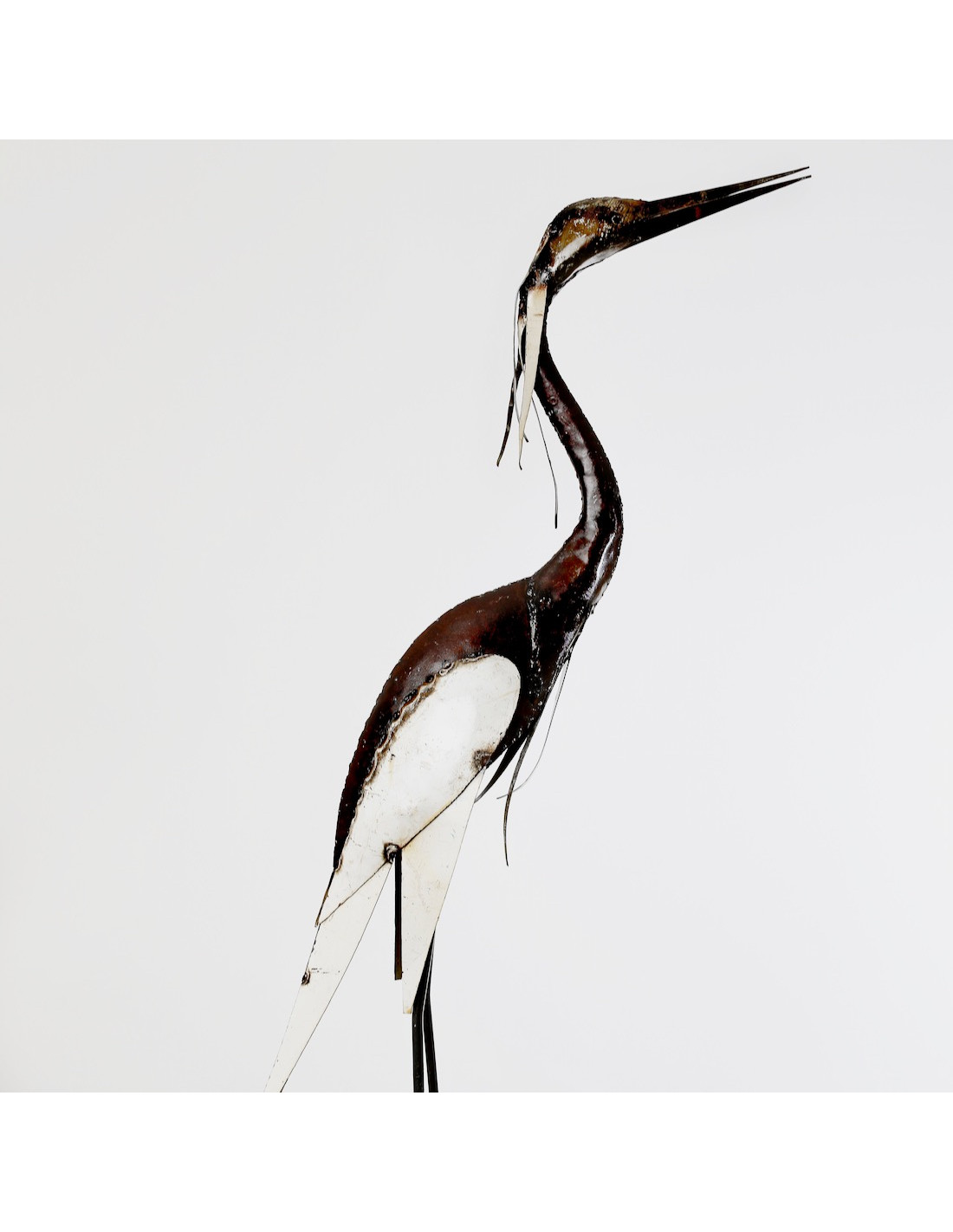 Ajoutez une touche d'élégance à votre intérieur ou à votre décoration de jardin avec notre héron en métal recyclé ! Conçu pour se tenir debout sur ses pattes, il peut également être fixé au sol si besoin. Parfait autour d'un bassin, il trouve sa place près d'une entrée, sur une terrasse, dans une montée d'escalier, ou même dans un salon ! Fabriqué à partir de métal brut patiné, le héron présente une belle teinte brune avec des nuances de gris. Ce modèle est également disponible en version avec des ailes et des plumes de tête blanches. Chaque héron est unique, avec des poses et des attitudes qui varient, et vous pourrez aussi découvrir le héron courbé dans notre catalogue. Notre héron en métal recyclé se décline en plusieurs tailles, du petit au géant, à vous de choisir celui qui s’adapte le mieux à votre espace ! Rustique et robuste, il est parfait pour une décoration stylée, que ce soit à l'intérieur ou à l'extérieur !