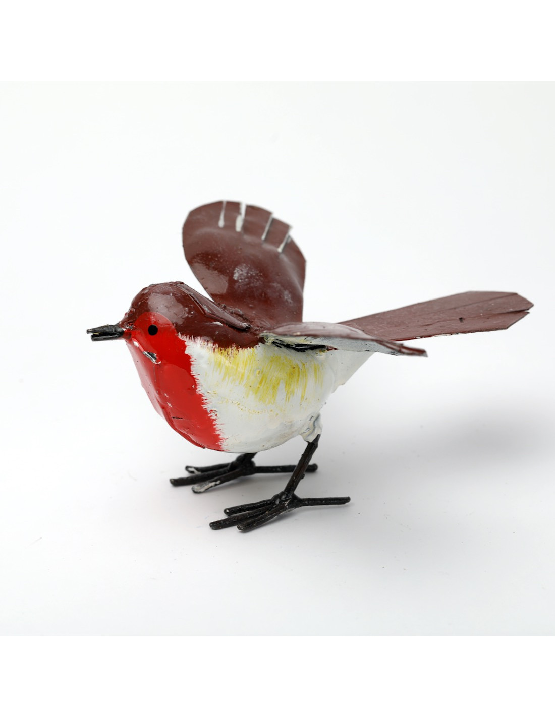 Notre rouge gorge est créée à partir de métal recyclé, entièrement soudé et peint. (Peinture spéciale métal)