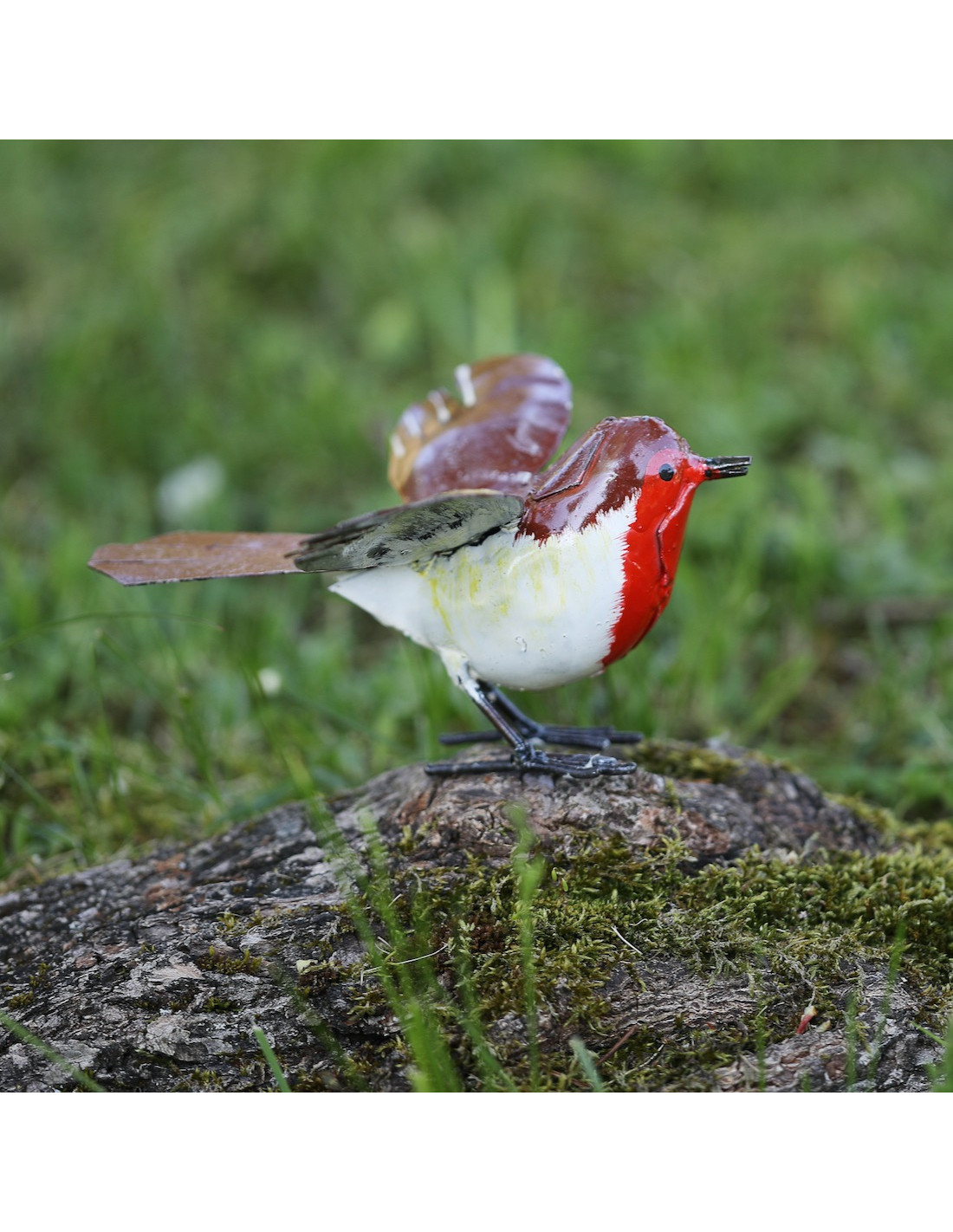 Conçu pour être posé debout sur ses pattes, notre Rouge gorge en métal est assez léger. Vous pourrez toutefois facilement le fixer si nécessaire.