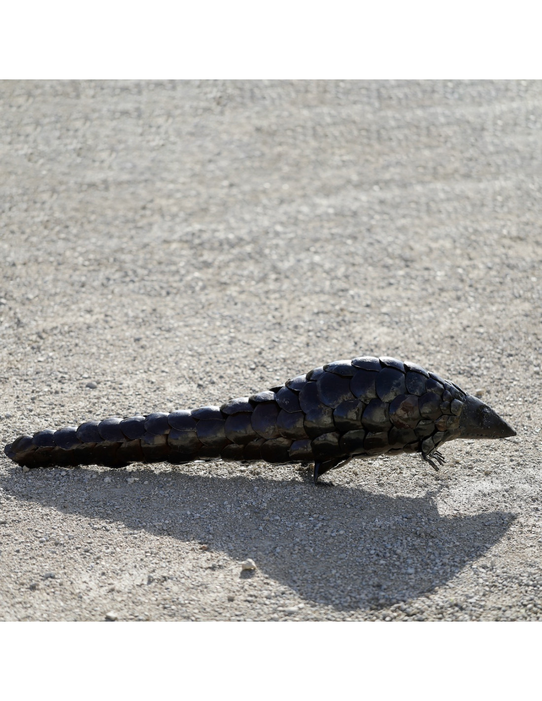 Très belle sculpture en métal recyclé d'un Pangolin pour créer un ambiance unique.