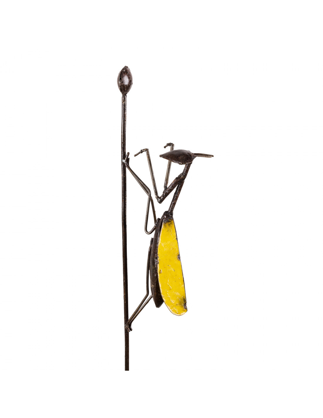Tuteur Mante religieuse en métal recyclé jaune pour vos plantes à planter en pot ou dans votre jardin !