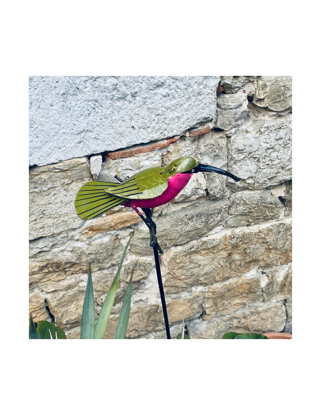 Joignez l'utile à l'agréable en installant un tuteur Guêpier d'Afrique en métal dans vos plantes en pot ou dans votre jardin !